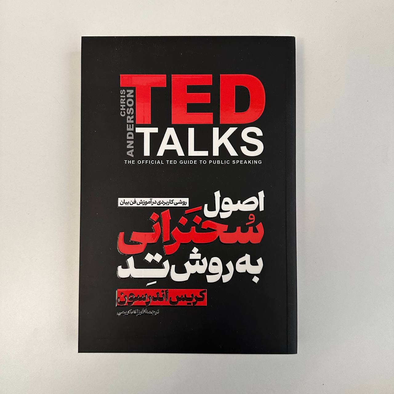 کتاب اصول سخنرانی به روش تد (TED Talks: The Official TED Guide to Public Speaking) یکی از ارزشمندترین و معتبرترین آثار در زمینه فن بیان، سخنرانی و ارائه تأثیرگذار است که توسط کریس اندرسون، متصدی و مدیرعامل مجموعه سخنرانی‌های معروف TED، به رشته تحریر درآمده است . نسخه فارسی این کتاب با ترجمه فرزانه کریمی و توسط انتشارات آذربیان منتشر شده و در اختیار علاقه‌مندان به هنر سخنوری و ارتباط مؤثر قرار گرفته است.